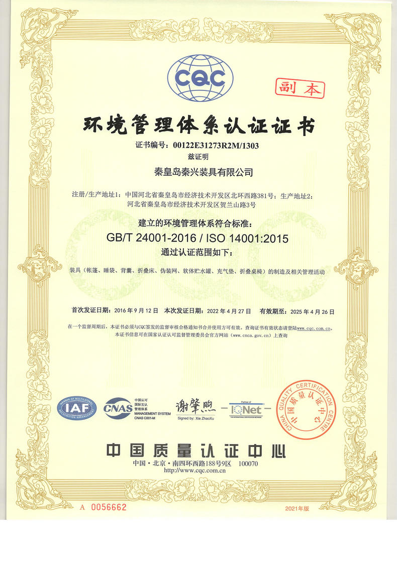 秦皇島秦興裝具有限公司有限公司源于我國(guó)第3524工廠,創(chuàng)建于2005年,占地面積30畝,是一家致力于研究,發(fā)展,制造和銷(xiāo)售為一體的綜合性裝具及紡織服裝加工生產(chǎn)企業(yè),我們的主要產(chǎn)品有單、棉帳篷,民用帳篷,旅游帳篷集各種機(jī)工產(chǎn)品等。